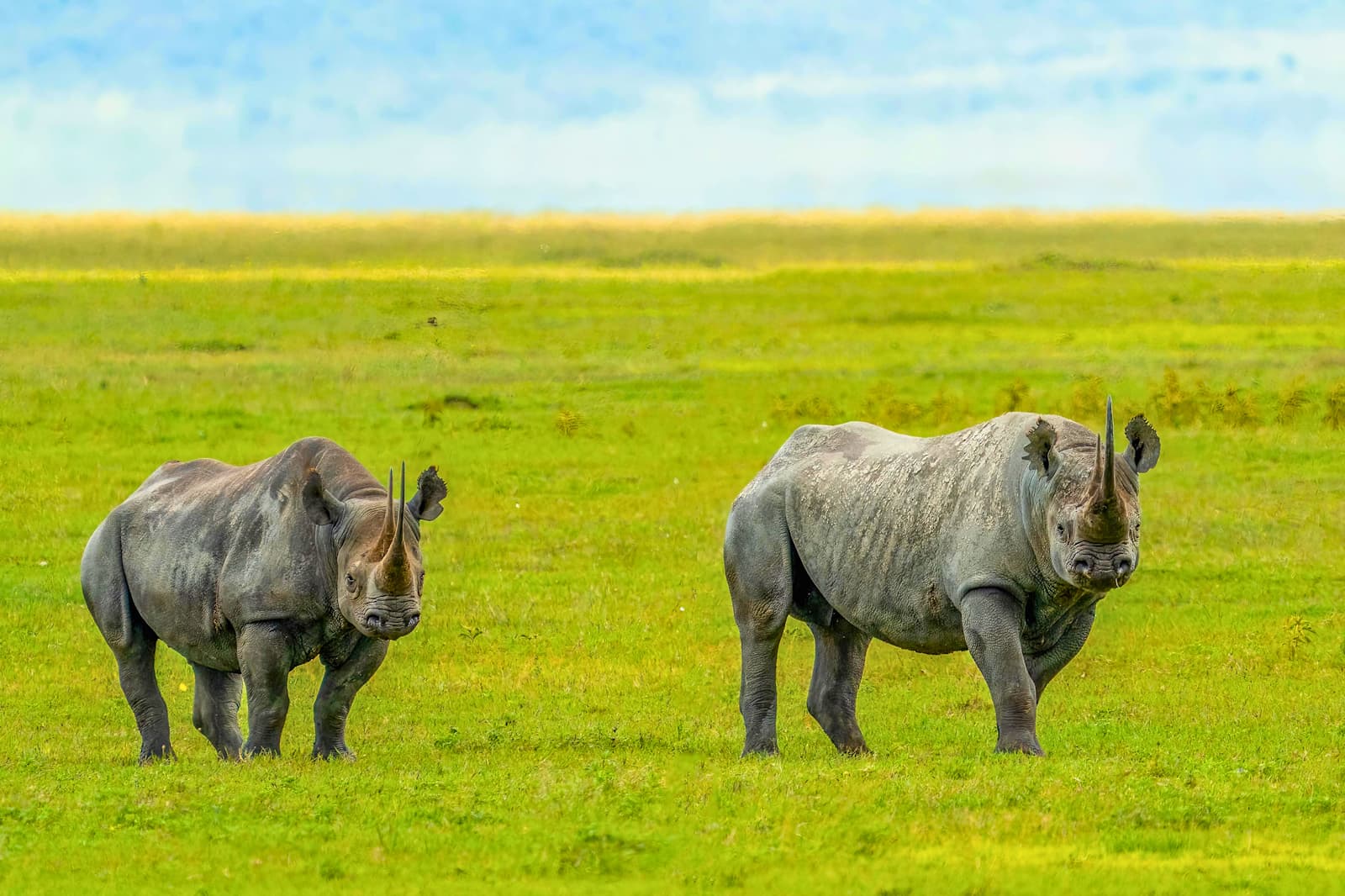 The crater hosts one of Africa’s densest black rhino populations for rare sightings.